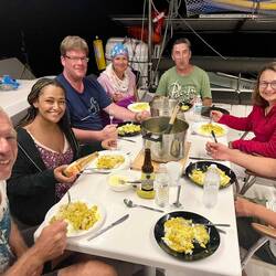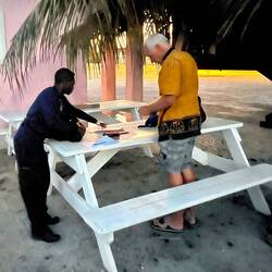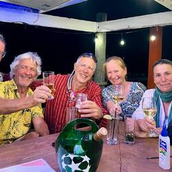 Um 16h trifft sich die neue Crew mit Jens im „Green Parrot“ und spricht den Einkauf ab.