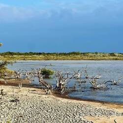 Mit dem Dinghy fährst du ab der Westseite des Shroud Cays rund 3/4 Stunden durch flache, mit Mangroven gesäumte Wasserläufe und endest auf der Ostseite wieder am Meer.