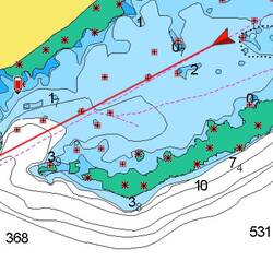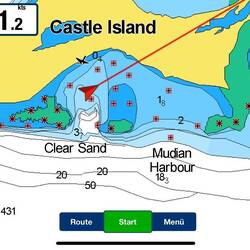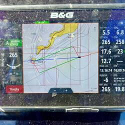 Wir tasten uns entlang eines durch Jens vor 2 Jahren aufgzeichneten Tracks in die Bucht. Einige Schiffe liegen bereits da und sind ebenfalls zu identifizieren. Erschwerend stellt sich genau jetzt ein Gewitter ein und wir werden klitschnass.