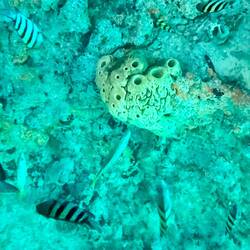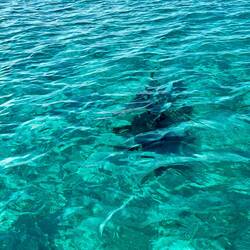 Kaum zurück am Schiff schwimmt ein 3m-Ammen-Hai direkt unter unseren Füssen durch!!!