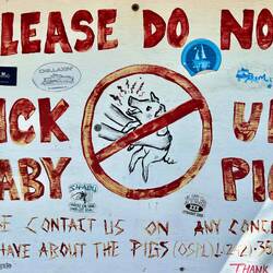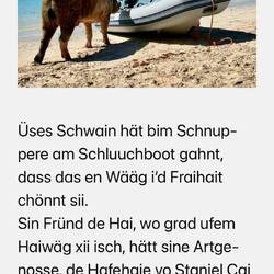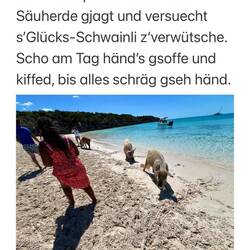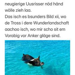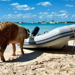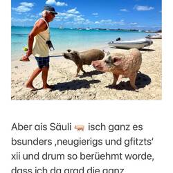 Aber auch wir verfallen der Attraktion: Dinghi beachen, Schweine „kraulen“, sich ablichten lassen, mit ihnen schwimmen …