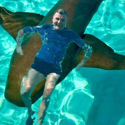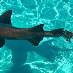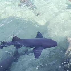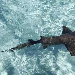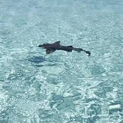 Als ich am Morgen mein tägliches Yoga auf dem Netz mache und mich auf den Bauch drehe, erblicke ich einen Ammenhai unter mir.