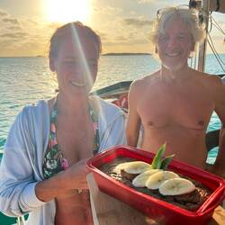 Heute geht‘s zur Schweinebucht, in 30min liegen wir bereits vor Anker.