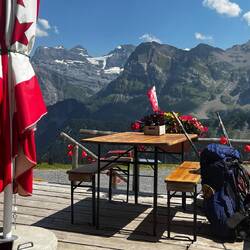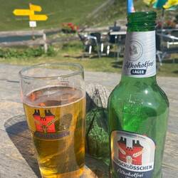 Heute ist Schweiz-Tag und wir feiern das gerade am Ende der Etappe bei einer Refuge mit Rivella und alkoholfreiem Feldschlösschen Bier. Doch nach 1900 Höhenmetern und 25 km haben wir uns dasもっと詳しく