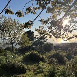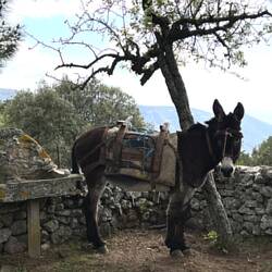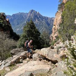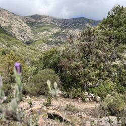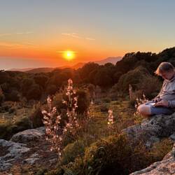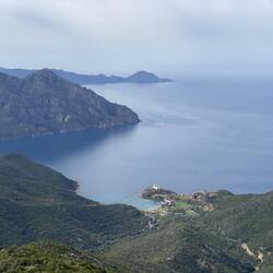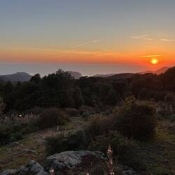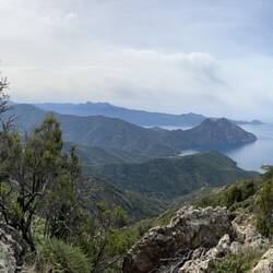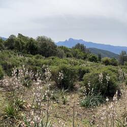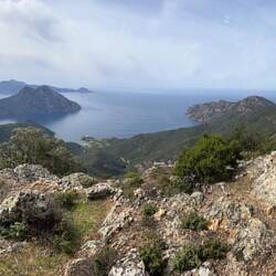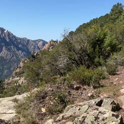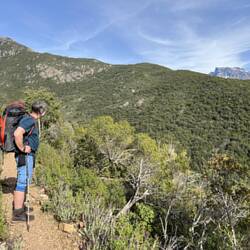 Ein erster wunderschöner Wandertag! Wir sind gegen 7 Uhr in Ile Rousse angekommen, von dort mit dem Zug nach Calvi, dann mit dem Taxi zur Auberge de la forêt de Bonifatu.