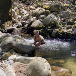 Start mit leckerem Frühstück und einem übermütigen Hund, dann langer Aufstieg mit Pause an einem Wasserreservoir mit Fröschen,Read more