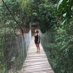 Nach der Stupa (buddhistisches Bauwerk), nehmen wir den Weg zum Wasserfall in Angriff. In vielen Reisebloggs fanden wir die Info, diesen als erstes zu besichtigen. Es ging den Hügel hinauf, über Stock und Stein, an abgelegenen Holzhäuschen vorbei. Definitiv eine holpprige Angelegenheit😅
