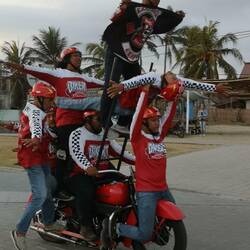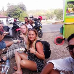 Jess, Fredy, Imam und ich starten heute mit unserem Rollertrip um Lombok.