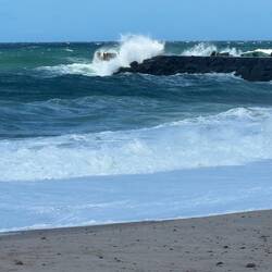 Der Sturm, den wir seit gestern haben, hat nochmal ordentlich zugenommen. Wir sind für einen Spaziergang am Strand und Kauf von Räucherfisch nach Vorupør gefahren.