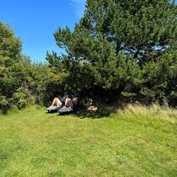 Am letzten Tag meint es das dänische Wetter nochmal richtig gut mit uns. Blauer Himmel und ganz schön warm. Da wird nochmal richtig Sonne getankt und gechillt.