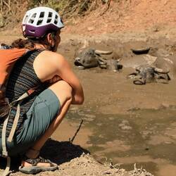 The Loop ist eine Motorrad/Moped Rundtour mit ca. 400km, vorbei an Wasserfällen, Höhlen, Aussichtspunkten und urigen Dörfern. Für uns perfekt, um ein paar Tage unsre Muskeln vom Klettern zu entspannen und das Land kennenzulernen. So machen wir uns von Thakhek aus mit einem kleinen aber feinen Moped, einer groben Karte & sonst wenig Gepäck auf den Weg. So 'leicht' waren wir noch nie unterwegs. Highlight unsrer 3-tägigen Tour war ohne Zweifel die Konglor-Cave. Eine teils riiiesige 7km lange mit Wasser gefüllte Höhle (bzw. eig ein natürlicher Tunnel) der zwei kleine Dörfer verbindet. Entgegen dem 'klassischen Loop' aber mit Empfehlung eines Kletterers entscheiden wir uns die Höhle mitsamt unsrem Moped zu durchqueren. So tuckern wir inklusive Moped in einem kleinen Holz-Lang-Boot den teilweise doch unruhigen Fluss 7km durch die Höhle - echt beeindruckend!! Nur den Transport fand ich etwas fraglich - unser Moped lag irgendwie seitlich quer im Boot, links und rechts stehen Reifen bzw. Lenker hinaus. Doch alles gut gegangen, und wir tuckern diesmal mit dem Moped auf der andren Seite der Höhle 50km in brutaler Hitze auf einer (teilweise schrecklichen) Erdpiste durch traditionelle Dörfer zurück in die Zivilisation - und zurück nach Thakhek. Alles in allem ein tolles Erlebnis, und ein spannender erster Eindruck der laotischen Lebensweise & Kultur.もっと詳しく