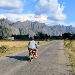 In Laos angekommen geht's für uns direkt nach Thakhek und weiter ins 'Green Climbers Home'. Unsre Unterkunft für womöglich mehrere Wochen. Beste Aktivität außerhalb des Kletterns hier: The Loop!