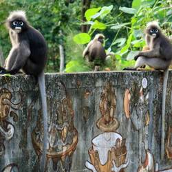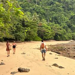 Zu Unrecht ist dieser Fleck Erde noch nicht international fürs Klettern bekannt - eine Vielzahl an meist zwischen 30 und 40 Meter langen überhängenden Routen in unterschiedlichen Sektoren mit immer schönen Ausblicken! Ganz harte Routen gibt es noch nicht, dafür macht aber wahrscheinlich das Wetter hier manches schwieriger als anderswo - die ersten Tage hier hatten wir anscheinend mit einer Großraumsauna inklusive gebucht: 32°C und 85% Luftfeuchte hören sich ned viel an, haben uns aber ziemlich bedient. 4.5 Liter Wasserzunahme ohne viel Klo gehen während der drei täglichen Routen - falls doch mehr Klettermeter möglich gewesen wären - die am Nachmittag zahlreich aufkommenden Schwitzfliegen haben uns flüchten lassen. Keine Sorge falls Schwitzfliegen einem noch unbekannt sind: hier werden sie schnell vorstellig!