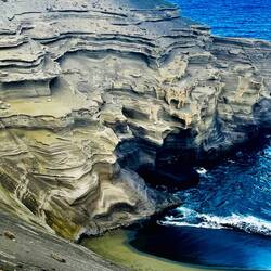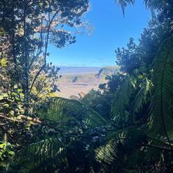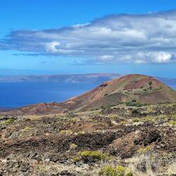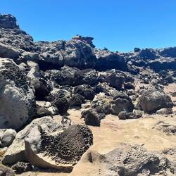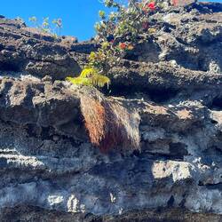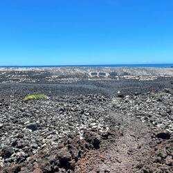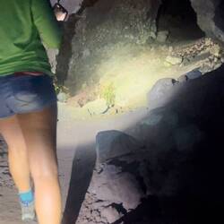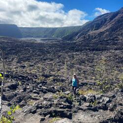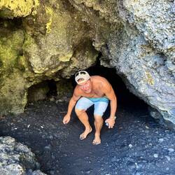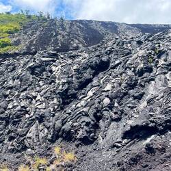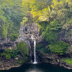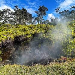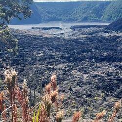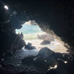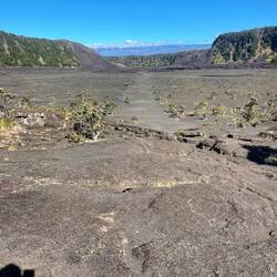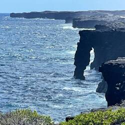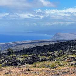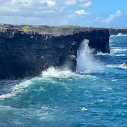 Volcano National Park is a very popular place to visit, but fortunately for us, most visitors are not early risers and not camped out in the park. We are both so we purposefully saved a lava tube and crater hike for this morning before others arrived. Our timing was perfect and we arrived at the Thurston Lava tubes at a time when we were all alone walking through the cave. This one was much more rounded and didn’t have large open areas like the last one we saw but was once again self guided. Next we took the Kilauea Iki trail and hiked down through the forest to the crater floor across the crater, then back up and along the rim. There is such a difference between the cool jungle and the hot crater floor. We really enjoyed seeing the volcano from different perspectives. Now feeling satisfied we completed all there was to see in the park, we headed to the coast to see where the lava from the 2018 eruption flowed into the ocean. You just can’t believe how large the area of land are that get covered by lava. Nothing can stop it and there was still a road that just ended at a wall of rock. We thought the hot pools that this area had prior to 2018, were covered with lava as the internet has indicated, but we saw a confident young women with her town heading down a trail and followed her. She sopped at a small pool surrounded by rock and said this was one of the originals that survived the lava flow. It was warm, but I felt it necessary to absorb the natural minerals so I soaked for a bit before we left the area.