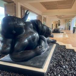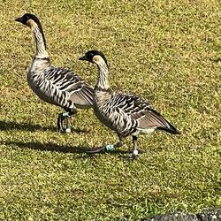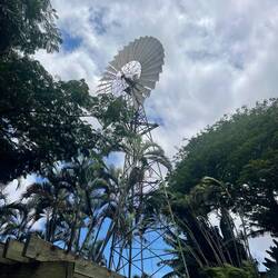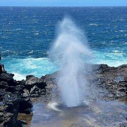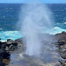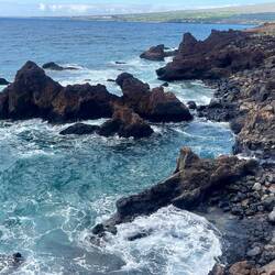 Drinking wine and driving where we weren’t supposed to (not in that order) was the theme of the day. Taking an advantage of the fact that we’re not yet used to the time change my day started just after midnight when I was able to watch the stars after the moon set. It truly is amazing what you can see when there’s no light pollution. Reawaking just after sunrise, we enjoyed our coffee and the scenery then set out north along the coast further into the closed area where we weren’t supposed to be driving. The scenery is beautiful very rugged with the lava fields flowing straight down to the ocean. Eventually, we had to turn around honoring our agreement with the van owner not to enter a certain more treacherous area. Later that morning we stopped at the Maui Winery in Ulapalakua where Annemarie was treated to a local wine tasting which featured pineapple wine originating back to the 70s. The estate was beautiful with huge old trees, tropical plants and brilliantly colored robins and other birds. Following our appetizer of brie with pineapple syrup and crackers, which went perfectly with the wine, we went for lunch across the street to the ranch restaurant where we got fresh organic hamburger for Annemarie and a venison burger for myself, so delicious. Full and tired we started our journey to the other side of the island passing the airport, where we started in Halalui, then south. Driving down the coast looked similar to the touristy areas of Florida with all the boutique hotels and small restaurants and shops. The end of this drive we reached our destination of Malaka’i Beach and it was well worth the journey. Beautiful, soft tan sand, with large waves breaking on shore made for a beautiful walk and great scenery. Not daring to swim in the rough waters like others were, plus the water was a little chilly, we sat and watched as people played and would get sucked out only to tumble back in with the wave. At one point Annemarie cursed me as I took her on a barefoot hike across the lava rock to Lookout point which was debatably worth the pain. Now late in the afternoon we scrambled to find our new camp still unable to go to where the fires continued but are more contained than yesterday and still restricting access to the campgrounds. Camping is very limited on the island and you’re not allowed to sleep in a vehicle outside of private land or campgrounds so we ended up heading to Camp Olowala where we were already scheduled for the following 2 nights. Before we reached the campground, we stopped at a large resort, Annemarie had read about called Grand Waimea where they have beautiful gardens and sculptures. When we arrived, we walked through the entrance, which was absolutely stunning and the most amazing resort I’ve ever seen. There were sculptures From the famous artist Botero and the most beautiful landscaped grounds I’ve ever seen. They even had a small church for weddings. Curious I had to see the price per night and the cheapest room is around $800 or 115,000 Hilton points. Once we reached the camp we were pleasantly surprised by the beautiful grounds. They also offer glamping and cabins along the Campervan parking. Chickens and roosters run wild here looking for any handouts they can get. I was hoping one I saw was sitting on an egg and as I was preparing to steal some breakfast for tomorrow when it got up and 4 tiny chicks ran away. We settled into the camp and enjoyed a nice quiet evening in our van still exhausted from our long travels. We look forward to our next exciting day tomorrow not yet sure where we will end up.En savoir plus