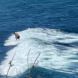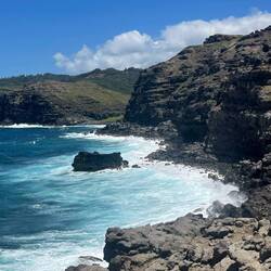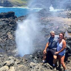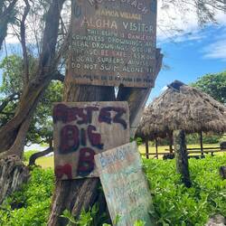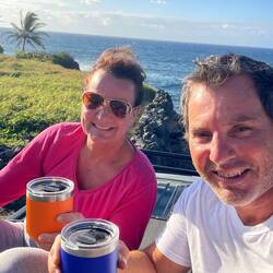 We woke up today nice and early thanks to a rooster who apparently thinks 3:30 in the morning is 8:00 AM and resides right behind our van. After some nice Hawaiian grown coffee and a little breakfast, we headed north along the west coast looking for the locally proclaimed best snorkeling spot in Maui, Napili Beach. This was an interesting beach because it was only about 20 yards of sand with a very steep incline from where you put your towel and chair down to the waterline. This Made for interesting people watching as the unsuspecting tourist would be walking along, aka, Annemarie, when a wave would come unexpectedly and start pulling them back into the ocean. We quickly grabbed our mask and headed to the waterline where the real entertainment began as Annemarie desperately tried to balance on 1 foot while putting a booty on the other and getting pummeled wave after wave. I almost fell in the water from hysterical laughter as she started rolling around the beach, finally able to put her fin on after being washed halfway out to sea. We snorkeled around and quickly learned that we are more spoiled than we thought with our underwater landscapes near home. There were some pretty fish, but hardly any coral or other marine life. After swimming quite a ways, we decided to have one more look around some rocks and to our pleasant surprise, a small sea turtle swimming right by us. That became the highlight of this beach. Not wanting to spend all our time on only one site we jumped back in the van and headed further north to see a blow hole we found on the map. The drive was beautiful windy roads up shear cliffs with magnificent views. Arriving at a small parking area on the side of the road, we started our hike past the danger sign down towards the rocky coast and through an area called acid war trail name such because of the way the rocks have been weathered to look like acid was poured over them. We made our way down near the blow hole, which shot a huge fountain of water into the air as incoming waves pushed under the rock out of the hole. I took some video really with the only intention of going viral for catching tourist dumb enough to try to look down the blow hole and getting sucked out to sea. Fortunately for them that didn’t happen and but we did get some beautiful photos and headed back towards the van making a quick pitstop to purchase some world famous biscuit cookies and dried mango from Mama Lai’s Homemade Goodness roadside stand. Just talking about them makes me want to eat one now. Heading south along the cliffside road we made several stops to hike down to hidden beaches we found along the way. At one point, we spotted a large catamaran in a cove that appeared to be taking snorkelers and figured this must be a great spot so we pulled over and walked through an old growth forest to a very rocky beach between the cliffs. This land is privately owned by native Hawaiians, but allows tourist access to the beach to enjoy its beauty. To get to the prime snorkeling spot we had to swim out quite a ways but the swim was well worth the effort. We swam through huge beautiful coral heads up to 15 feet high teaming with tropical fish. I would say this has to be the most beautiful snorkeling spot. Now getting later in the day we loaded up, heading back south towards our camp and passing through Lahaina, where we witnessed the devastation of the recent fires. Our hearts really go out to those impacted as you could see how horrible this must have been. Back at camp Annemarie whipped up some chicken and mashed potatoes and we had a relaxing evening under the stars.En savoir plus