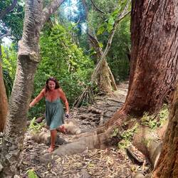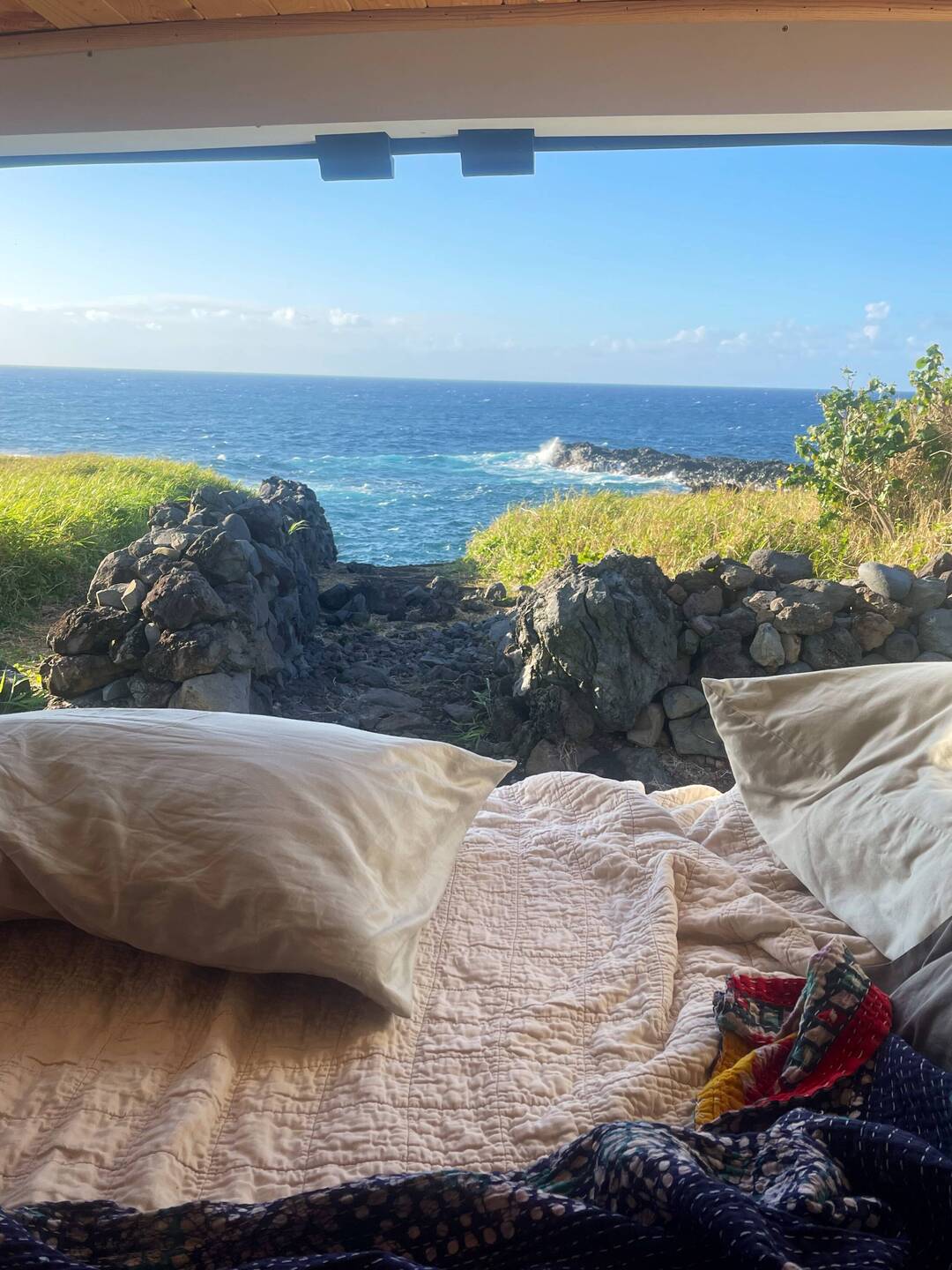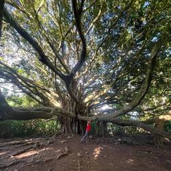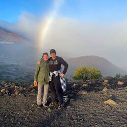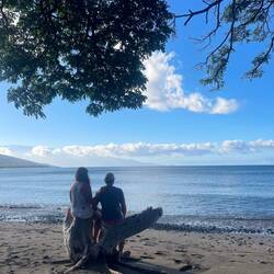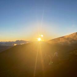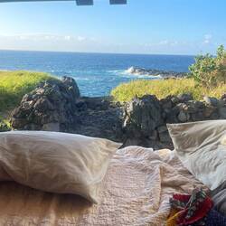 It never fails, one of the best parts of nomad traveling, moving from place to place every or every couple days, is that you learn the best of the best to do from the people you meet along the way. Yesterday, we were swimming at a waterfall and met a lady who was staying at our current camp, Waianapanapa. She told us the sunrise on Piilani trail behind the cabins was the best. So right when we woke up, without coercion, amazingly, Annemarie jumped up put our hiking boots on and off we went. It was an extension of the shoreline hike we took yesterday across lava flows on the coast. We watched the fiery sunrise shining on the rocks with waves crashing. The energy and view was incredible. Interesting this part of the trail was closed at that time, but we figured we would be back when it was open so it was worth risking getting caught in order to see our secret sunrise. The trail was 4 miles round trip and we made it most of the way before returning to spend some time at black sand beach without the crowds. This beach requires a reservation but if you are camping, you can go anytime. Hearing there was a lava tube nearby, and a cave, we looked around and found a hidden opening hiding in plane sight off the beach. We crawled through, yes, I was very hesitant, and could see the waves crashing in at the other end. We still had a full day ahead so off we went back on the Road to Hana. We made a stop at an old growth forest wayside park and hiked through the most amazing huge old trees and beautiful tropical plants. We decided to go back to the surfer beach, Ho’kookipa Beach because we did not look in the right place for the turtles that rest there the last time we were there. Now with the additional knowledge, we saw several green turtles laying on the beach. Luckily one went back in the water so it verified they weren’t all just laying there dead. A quick stop at a local market lined with surfboards and another beach visit and it was on to our final camp in Maui. This was an urban jungle vibe, as described by the camp owner. It was really a few acres in the town that he is making a farm camp. There were plenty of chickens and ducks, a hokie shower and a port a potti, but not much else, but we were happy to be helping him start this new venture. The islands are lacking in camping locations so any good new ones are a benefit to the local economy. Sadly, this is our last night in Maui and we fly out in the morning for the big island.En savoir plus