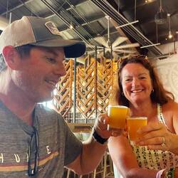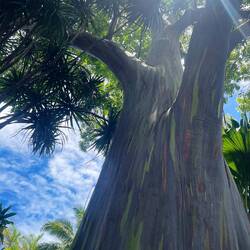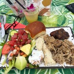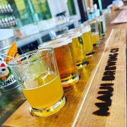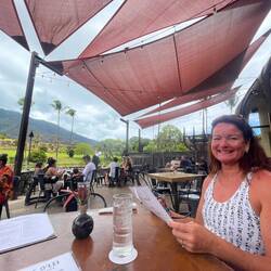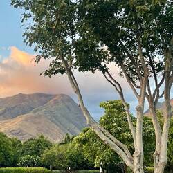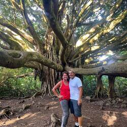 Today was a more relaxing day and we took our time getting going and not exactly sure what we were going to do. The fire was still keeping the Crater Road closed so we had some breakfast at the camp and decided to check out Iao Valley State Monument, which is a more sacred place to the native Hawaiians as this was an area where great battles between rival kings of the islands would take place for control of Maui. The main geological feature is a mountain that has eroded to almost a point and this is where the troops from Maui would gain a vantage point and wait for the invaders. We hiked up a river quite a ways until we found the perfect spot with a small waterfall where we were able to mostly be away from other tourist and enjoy the cool but not freezing river. The relaxation part of this excursion ended quickly as Annemarie was standing on the steep sandy side in her flip-flops. Just as I was thinking “be careful”, her feet slid about 3 inches before she became airborne and landed right on her tush. Making sure she was ok first, I was clear to laugh, oh that is gonna leave a mark. We made our way back down the trail and found a huge tree that just look like it needed a hug. Back at the parking lot, Annemarie told me that she had read about a local restaurant famous Cafe Olei famous for its Ahi nachos. for its nachos. Located at Maui tropical plantation, they provide an example of all of the different types of fruits and trees common in Hawaii. Now, happy having had her fill we loaded back into the van, but were still undecided on where we were going to go. So what better place to regroup and plan but the Maui brewery. We were shocked at how large of an operation this was but after talking with the bartender we found out this is the location that brews the beer that’s distributed throughout the country. A couple flights sampling the different brews and off we were to see if there was any local volleyball we could join. Fortunately, the courts we found were empty being the winds are still probably around 30 mph which is not very good for our game so off, we went back to camp for an early evening to relax and just enjoy the cool weather and nice sunset.En savoir plus