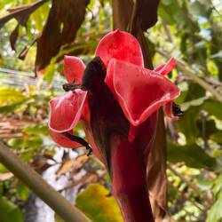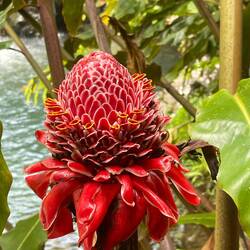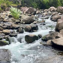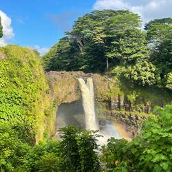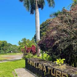 Last night was the first night it really rained and we kept the van doors closed. Fortunately we had a fan and AC unit we could use that ran on the battery system. In the morning I walked around the property and took some photos of all the flowers then we quickly left early to see rainbow falls. The reason for this name is because if you arrive early enough and the conditions are perfect you could see a rainbow in front of the falls. We had the timing down as we arrived, we just needed the conditions to be right. We hiked up to the top viewing point where we admired the falls and to our surprise, saw the rainbow appear. It was a small one, but definitely there and better than nothing at all. We next headed to Akaka Falls and of course, stopped along the way. One place we stopped was what looked like a cave going straight through the mountain with a river running through it and a waterfall. We later found out this was a lava tube with a river and that we could have hiked down and swam in it. I’m not so sure we would have though, it was running pretty fast and you don’t test Mother Nature around here.