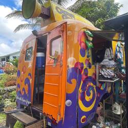 Now in the large coastal town of Hilo, we stopped at a small outdoor market, then headed to The Hidden Nene to plot our next move. Annemarie had their special, The Bird of Paradise, and got to drink out of the birds butt. Now with a plan we headed to our next camp at a Zen property where brief chaos ensued. We have pretty much concluded that 5pm is quitting time for our touristing. Today we went past that and hangryness and just being tired from a days travel shined through as we were unable to park our van at the new camp. When the owner finally appeared I was a little irritated and she basically said she preferred if we just moved on (remember, this was some sort of Zen, House of Happiness property) When I said why, she said “because you are grumpy”. I smoothed it over by explaining we were just tired from driving and we parked the van. She had beautiful gardens with all the local flowers and Annemarie especially liked her bamboo shower house. We settled down for the night with a glass of wine or two and a nice dinner.En savoir plus