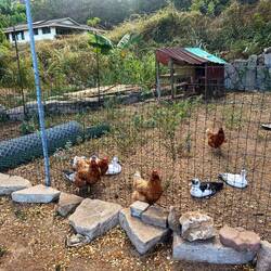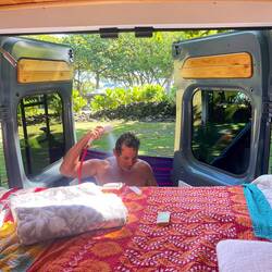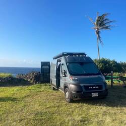 Today, waking at our side of the road camp, we were pleased to have made it through the night without incident. To celebrate we made our way to Walmart for our week’s food supplies and headed for some local grown coffee. Avoiding corporate coffee shops we chose Bikini Bottom Coffee strictly because of the name. We had a busy day ahead of us so we were eager to get moving. The area around Kona is much more of a beachy town vibe than Maui, with tourist shops and restaurants. There was even a sale on spam musubi. We walked past Hawaii’s oldest church, then off we went to a world renowned snorkeling spot called Capt Cook. This is where a monument is located for the late Captain James Cook who discovered what the Hawaiian’s had already discovered, Hawaii. Deciding to hike vs pay for a boat ride to the location, we started the 4 mile trip, fins and masks in hand, down the mountain to a cove surrounded by rock. The hike down was literally 2 miles down the mountain, meaning the way back was going to be 2 miles back up. Along the way we ran into some Billy goats, one of which thought we were trying to get to its baby and ducked his head down moving towards us and almost had us running down the mountain. In under and hour we were sliding, stumbling, and flopping off the rocks gracefully as a beached fish, into the water. Once in, we could see why this was such a popular location. Beautiful coral and fish were everywhere. We spent about an hour then started the trek back up the mountain, with several breaks on the way. Off we went, now heading for the south of Hawaii to the southernmost tip of the island. We have found that a lot of the popular places are not really easy to pinpoint once you arrive close to the destination. Here we knew we were close, but there was not monument or marker, just a parking area and open coastline. Using google maps we found the location and can now say we went as far south in the US as possible. We still had some time left in the day so we decided to make one more stop on our list and visit one of only 4 green sand beaches in the world, Green Sand Beach. Again, there were 2 ways to get there, another 4 mile hike, or a very rough ride in the back of an old 4x4 truck with a well weathered Hawaiian with an unlit cigarette hanging out of his mouth promising not one, but 2 beach visits for $20. We figured this second option provided the best opportunity for adventure and we weren’t wrong. Off we went, about 10 of us, bouncing into each other as our guide somehow made this truck rock crawl over the rugged terrain. Several times he would have to throw it into reverse to get into a low gear. Once at the beach we were shocked to see it really was green, colored by a mineral that comes out of the lava rock as grains of sand. We went for a swim in this very remote beach, enjoyed the views, then bounced our way back, stopping to see the site of an ancient Hawaiian fishing village (piles of rocks) and to pay homage to the ancestors by me being given and asked to pour out an ice cold highly desired beer. I didn’t dare risk angering the spirits by sneaking a sip. Dusty and beaten from the ride we returned to our van and started our search for our new camp. Annemarie found us a macadamia farm to stay at so that’s where we headed. It was a beautiful property with a macadamia nut orchard and nice wooded camping area. What a treat for a camp after a long day exploring.En savoir plus