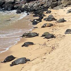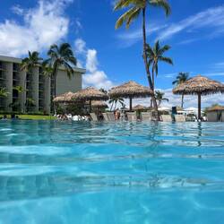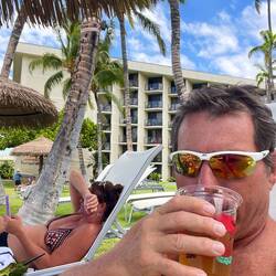 The story telling will be short as there was not a lot of activity on this final day. We mostly enjoyed our resort, starting the morning with eggs, ham, potatoes, for Annemarie, and spam wrapped seaweed for me. We followed this Hawaiian breakfast with a morning snorkel to the local reef about 300 yards from the resort shoreline. It was a bit of a swim, but once out there we saw some fish, pretty good coral, and the grand finale, a turtle that had no concern swimming near us for as long as we liked. I was able to capture some great video of this majestic creature as it fed on the reef and glided through the water. What a great and appropriate way to spend the last day. Really, the remainder of the day was spent drinking tropical drinks by the pool before heading off to the airport for our overnight flight home.