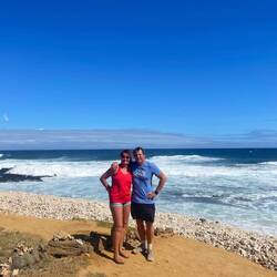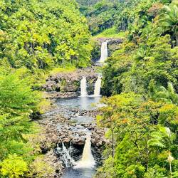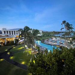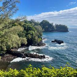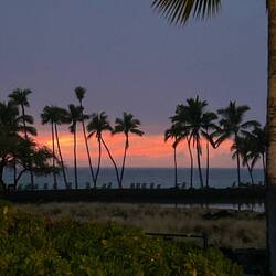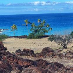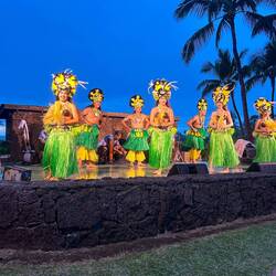 Last night was thankfully uneventful as we woke up at a pull off with a great view above the coast. Since we have now completed our drive around the big island and come full circle back to the Kona region it was about that time to give the van a good cleaning, and pack up all our things so we could return the van at 11. Having some time after everything was ready and we enjoyed our view over some coffee and headed down the mountain for a coffee farm tour at one of the producers of the famous Kona coffee. This region provides a very limited belt of about 23 miles by 3 miles where coffee plants flourish and they produce the Kona coffee. A specialty bag consisting only of Peaberry coffee beans can cost $80 for 16 ozs. We learned this farm buys from over 100 local coffee farms and processes the coffee for market. Getting close to time to return the van we headed to the return site dropped it off and Uber’d to pick up a rental car for a day. We had decided we did not want to be stuck at the resort for the last day should we want to explore more. Off we went now feeling like I was sitting on the ground after driving the huge van. We arrived at the Marriott resort for our grand finale of the past 2 weeks, with a luau planned this evening. I did not want the last day to be sad given all we had done so, yes, I splurged on this last night where we had an ocean front resort with a balcony overlooking a lava flow gardens and view of the ocean. There was a large infinity pool and a second pool with beach sand. We headed to the bar and received our free drink and then up to the room for some rest before our luau. I am not really one to sit for a show very willingly so while I was looking forward to the dinner part, the show was more for Annemarie and of course, how can you go to Hawaii and not watch a luau? Arriving for our priority seating, told you I splurged, we were given real flower lais and a gift box and seated at the table right in front of the stage. After a short rain delay, I was quite entertained by the different cultural dances. I still don’t know how they can more their butts that fast. We watched as they dug up the pig from the hot coals, then ate the delicious meal that included the pork, and my now favorite ube sweet potatoes with some kind of coconut cream sauce. It was delicious. What a great ending to an epic vacation. Tomorrow we relax and get ready to return home.En savoir plus