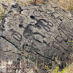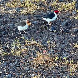 I have never said before that I woke up and went out collecting macadamia nuts, but that is what I did. After gathering quite a few, we headed up to the main house on the farm where the owner showed us the tricks to opening the nuts. I opened a handful and decided we could take the rest home to open. They had a coconut taste to them. Today we are off to Volcano National Park. Along the way we stopped at another black sand beach and saw a turtle feeding. His shell must have been taking a beating from the waves and rocks. Our camp for the night is inside the park and is first come first serve so we stopped there first to make sure we got a spot. This camp is in a eucalyptus forest and smelled great. Spreading our wet towels on the table to dry, we made it clear we claimed our spot and were comfortable heading into the park to explore. We opted to drive a 20 mile road called chain of craters down to the coast. The lava fields were amazing. The volume of lava that flows wiping out everything in its way is really incredible. Down by the ocean we saw the sea arch formed by the erosion of the rock by the waves. It’s like a battle where the sea gets ahead then the new rock is poured in. Nearby was a hike to the largest concentration of petroglyphs in Hawaii. Across the lava field we hiked arriving at a large area where past Hawaiian’s told a story through their carvings in the rock. I do think the mainland Indians were slightly better artists, but maybe they had better instruments to record with than just rock chisel. On the way back we stopped at the many craters, some much larger than others, and found steam vents where hot steam was coming out of the rock in different places. This must be like a release valve for the pressure under our feet. The next site was really special. The native Nene bird is a Hawaiian goose and their state bird. As of yet we had only seen signs to watch for them crossing the road. All of a sudden I heard the distinct honk of a goose and quickly did a u turn in our 22 foot van. Sure enough we found the Nene’s honking their way across a grassy area by a military camp entrance. Now satisfied we saw one of the few endemic animals of hawaii we returned to camp for the night. On the menu - Chicken Alfredo.En savoir plus