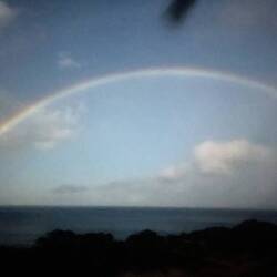 Last night we saw something I had never heard of before, a nighttime rainbow caused by the light from the moon. At 3 am, we were taking a late night bathroom visit when I looked over and said is that a rainbow? Sure enough it was and I have picture of it just before it faded away.
