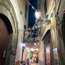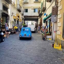 We’re staying at the Grande Hotel de la Ville, and managed to drop of our bags before lunch. My initial impression of the town is that it felt a little more like the Caribbean than the other places we’ve been in Italy. Not sure I can describe why, though once we started walking around and got to the shopping areas the vibe changed back to feel more European. Lots of tiny streets with tiny shops. Lemons are a big deal here: lemon art, lemon candy, and of course limoncello, of which I see a bunch of in our future.