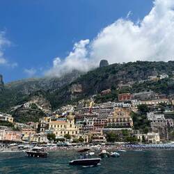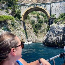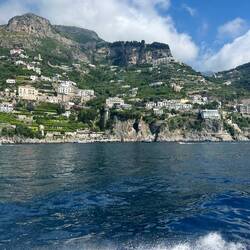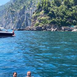 We headed out and immediately grabbed the seats on the front - solid score for us. The ride out was beautiful and we were continuously being soaked by the waves as we moved down the Sorrento coast. We passed Capri and then turned around Punta Campanella where we were introduced to the Almalfi coast. The wind died down and the waves stopped splashing- not sure what caused this, but we then had an hour of uninterrupted boating which was so nice. The weather was beautiful and there was a nice breeze.
