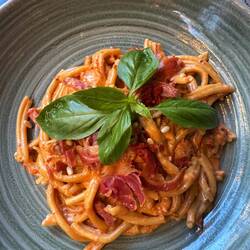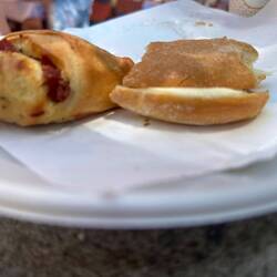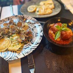 We walked back to the hotel and grabbed some more granita (because why not) and a dip in the pool before showering up and heading out to dinner. We ended up at La Locanda del Gusto purely for its proximity to the hotel (we were all tired and sunburnt) but definitely not for its ambience which is right on the Main Street (not atypical in Italy (or even Needham for that matter, but still loud)). But this may have been one of the top meals we have had. We started with large (and strong) limoncello spritz’s. Then their Sorrentina gnocchi to share (think Gnocchi caprese) then Dave and I split the lemon chicken, meatballs and lemon ravioli with clams. All amazing. Becky had the carbonara which was delicious and huge (also it was the Chefs specialty). Mike had the arriabata which was a little too spicy to eat but there was enough other food to share. Finished with a lemon tiramisu and some other pastries at a nearby shop and then back to the hotel.