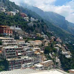Typically you’d take a boat from Sorrento to Positano (and then the beach club has a water taxi from Positano to the beach club), but we already had a car ordered to drop us off (originally planned to bring us to the start of the hike). Actually ended up very happy to get the ride instead. The views from the mountain tops were gorgeous, and it was interesting to look down on the water and towns that we were looking up at from the boat yesterday. Our driver went into full tour guide mode; he stopped at a few picturesque areas, took our pictures, and described the area. Best unexpected benefit in a while.