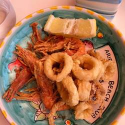 We had dinner at a beach club (place you can essentially rent space / chairs by the beach for the day) called Bagni Sant’Anna. Remember how high up our hotel was? Yeah that means dinner was climbing all the way down to the beach. The area is known for lots of stairs, and lived up to its reputation. But the views of the sunset on the way down to and during dinner were impressive. We paid for the ambiance, but the food was quite good as well. Fried calamari, sea urchin risotto, potato crusted cod, and some fish we had never heard of were the standouts. The suckling pig was ok. Apparently in this former fishing village, you should still order the seafood. We rewarded ourselves for making it back up all those stairs with some gelato. The place claimed to be the “worlds best ice cream”, which is probably a stretch, but it was probably the best gelato of the trip.