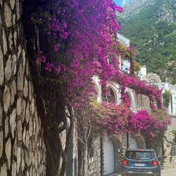 Next stop was Positano. It was packed and we got off the boat along with a huge crowd! We started wandering and ended up at a dead-end with only one way to go and that was up! We started climbing and quickly learned how hot it really was outside! We climbed, turned and climbed some more. But it was worth it and the views were amazing. And then we climbed more. The bougainvillea lining the road was such a beautiful contrast and the climb was well worth it. Then we climbed more. Even though we were supposed to get sandwiches and snacks on the boat, once we finally descended, we grabbed a few quick and delicious paninis (napoleon and a ham and cheese) and headed back to resume our perch on the front of the boat.
