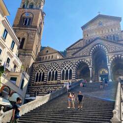 We pulled into the Almalfi port and ventured through the Main Street. Looking at all things lemon. Almalfi is known for their lemons and they were beautiful and huge! We wandered and stopped to grab some gelato and the most delicious lemon granita-in a lemon (we did have a fun snafu where we sat at the table but then they wouldn’t let us share or get coffee at the table so we had to get up and get takeaway … but we got to use the bathroom, so it all turned out ok)! Then back to the boat!