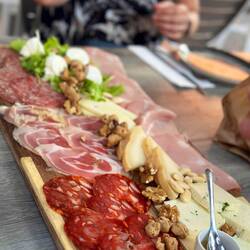 We started at a local market for a cheese and charcuterie tasting—because nothing says “let’s exercise” like eating five kinds of fat. Our cheese lineup: