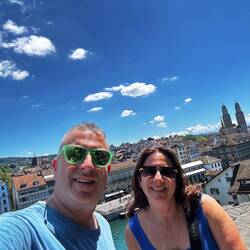 Dave and Carrie began their trip first in Zurich, easing into Europe with bakery stops, pharmacy runs, and Chagall windows. From there, they moved on to Lucerne, where they endured a downhill hotel trek, relaxed lakeside, and learned that Swiss pepperoni is just… peppers. They discovered the joy of the Sunset Bar and ate (accidental) whole chickens.