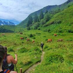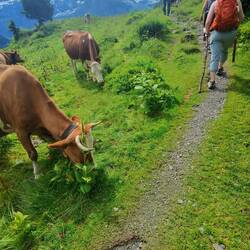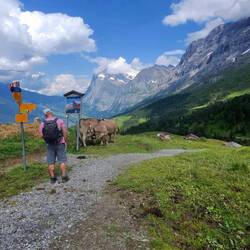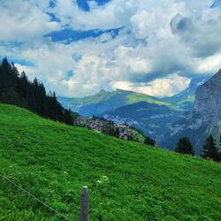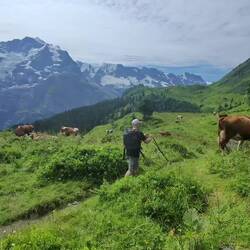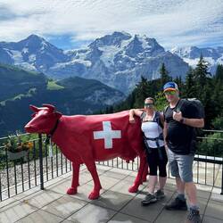 • Hiking the Mountain View Trail (Grütschalp to Allmendhubel), with wildflowers, cows, and a stick-related compliment from a passing hiker.