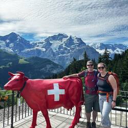They reunited in Lucerne with Becky and Mike and explored the old town, the city walls, and the Lion Monument, punctuated by much chocolate tasting and Dave’s ongoing feud with Swiss prices (“too many CHFs”). They dove into their first of many Euchre games.