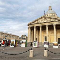 We stopped and went into the Abbaye Saint-Genevieve but left after we’d had enough Jesus. From there, we passed the Library which included names of people who made a profound impact on French (and general) society- including Moses. Next to the library is the Pantheon which we, last minute, decided to pay to enter and explore. Inside, we noticed the juxtaposition of the early religious iconography, revolutionary dedications, and modern displays (from 2020). We descended into the crypt beneath the pantheon where we decided to prioritize which ones we visited: Emile Zola, who spoke out against antisemitism during the Dreyfus Affair, and Victor Hugo, who wrote Les Miserables (which we’ve decided to go see in June) and Hunchback of Notre Dame. As we exited we noticed a painting that including a few beheaded bodies - including one that was alive and picking up his own head. There’s some gruesome stuff in Christian imagery.