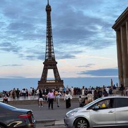 Upon our arrival in our Paris apartment, we were excited by the AC and our first mission: laundry detergent. Mike and Dave masterfully successfully navigated the grocery store with the help of ChatGPT to get said detergent so we could do a much needed load of laundry post-hiking trip. We ventured out to wander our way towards the meeting spot for our tuk tuk tour of the city. We saw Notre Dame, a few other sites, and stopped for drinks and our favorite: meat and cheese board. Our tuk tuk tour from Bruno including all of the major sites, some history and evaluation of France’s current and past leaders, and an overview of how Paris came to be in its current iteration. Despite the poorly placed bars on the Tuk Tuk, we were able to get an understanding of the city and take some good pictures. Our guide dropped us at restaurant, Cafe Gustave, which was delicious and Eiffel Tower vicinity priced. After dinner, we took the short walk to see the Eiffel Tower lit up to cap off our first night in Paris.