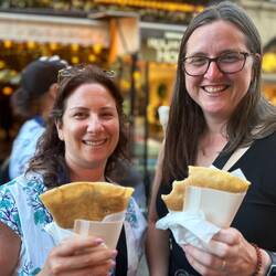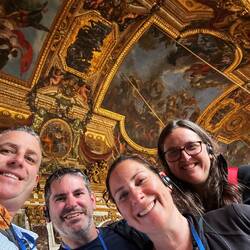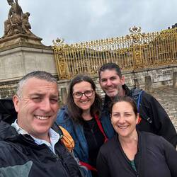 Paris began with train chaos and euchre revenge, followed by laundry heroics powered by ChatGPT. They explored the city by tuk tuk, hit classic sites like Notre Dame and the Eiffel Tower, and had a fantastic (and occasionally wet) day biking through Versailles with the world’s most sarcastic tour guide, Andrea.