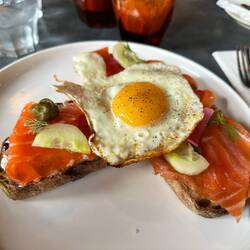Today was about having great food (mostly recommended from TikTok) and going wherever we felt moved (and enjoying the beautiful weather). We began a little later than usual with breakfast at Sain Boulangerie including a breakfast sandwich for Dave and lots of delicious pastries.