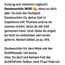 Thank you Collin my friend, for 1055,7 gemeinsame Seemeilen. I miss you. Have a good time at home with your family, 💝 (my english is‘nt good, but we understand us), deine Peggy. 🙏🏼