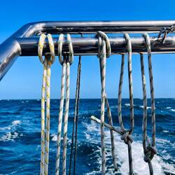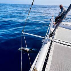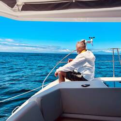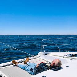 Mittlerweile ist es 8, Collin ließt über den Hafen von Saldanha und trinkt seinen Tee, Ralf ist in seinem Schlafsack verschwunden und ich warte, bis ein weiterer Matrose wach ist und gehe dann auch noch ne Stunde schlafen. Sollte uns kein Wind beglücken, unsere Tanks sind beide nur noch 40% gefüllt, wir fahren seit gestern sparend mit abwechselnd nur einem Motor, kann es noch 2 Tage dauern, bis wir in Saldanha sind. ..das ist also „dümpeln“…. ⛵️