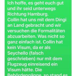 20:40 wir sitzen eingemummelt und warten auf UberEats. Ich bin total k.o.. Collin ist schon am Flughafen, also auf dem Weg nach Hause. Das war so nicht geplant. Collin hat als Seychellois nur 30 Tage Visum und die Reise nach Lüderitz und zurück nach Capetown zählt fortlaufend, also nicht ab heute neu 30 Tage. (..es fällt mir gerade schwer den Satz zu basteln, aber ihr versteht mich..) Da er in Namibia gar kein Visum erhalten hat, da er auf dem MeerWeg eingereist ist, mit dem Flugzeug wäre ein Visum selbstverständlich, (Das wurde ihm von den Behörden auf den Seychellen anders mitgeteilt.) hat er Sorgen, dass er auch auf der weiteren Route EinreiseProbleme bekommt und möchte das gern ausschließen. Also freuen sich Laureen, Anissa und Nathirah zu Hause auf Collin und ich glaube, Collin findet Ruhe, kann Revue passieren lassen und vertraute Energie tanken, für die kommende Zeit mit uns auf dem Meer. 🙏🏼