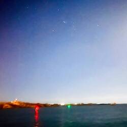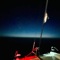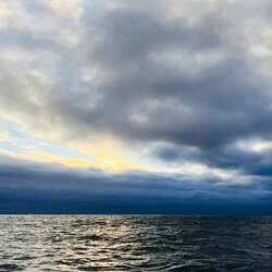 Als mein Wecker zur Nachtschicht klingelte, sah ich ein helles Licht, nahm instinktiv gleich mein Handy und filmte und dachte, ich nehme, ich hab wohl noch geschlafen, das leuchten eines Leuchtturmes auf und freute mich. Die Männer erzählten mir dann, dass ein Gewitter vorüber gezogen ist. Mein Leuchtturm war gar kein Leuchtturm….