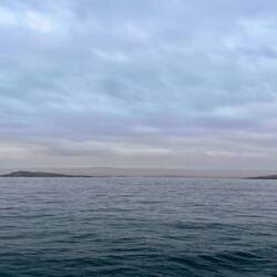 Es ist nach 10 und der Himmel lichtet sich und ich weiß, die Sonne wird alles trocknen was gerade noch klamm und feucht ist, und am Horizont die Küste von Südafrika in verschiedenen Schattierungen, dunkelgrau, grau und hellgrau, das Meer silberfarben glitzernd, ❤️, da brauchste keinen Farbfilm. 🙃