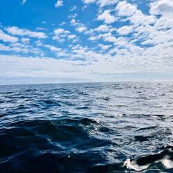 Andreas hat gestern ganz viele Delfine gesehen und auch einen Wal, der aus dem Wasser gesprungen ist. Wir hielten dann alle Ausschau und sahen, wie hier und da Wale die Luft ausstießen.. ..und dann…. ….direkt vor uns.. 🐳 ..WAHNSINN..